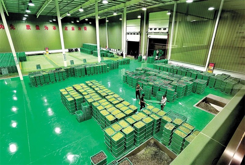 當(dāng)天采摘的油橄欖鮮果進入加工車間 (李蕊娜 攝)