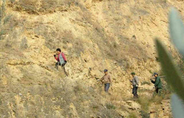上世紀90年代,李慧(左一)帶領當?shù)厝罕娫诟拭C省隴南市武都區(qū)佛堂溝一帶栽種油橄欖。